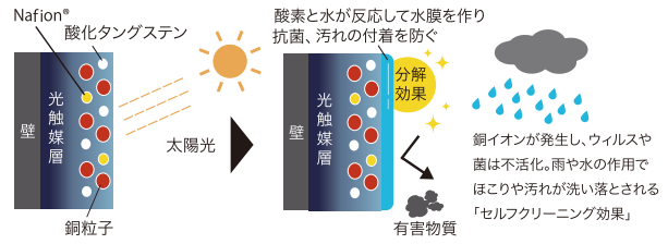 抗菌、抗ウイルスおよび高耐候であるため長期的に機能を維持します。